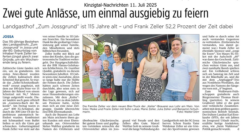 115 Jahre Landgasthof Joßgrund und 60 Jahre Frank Zeller