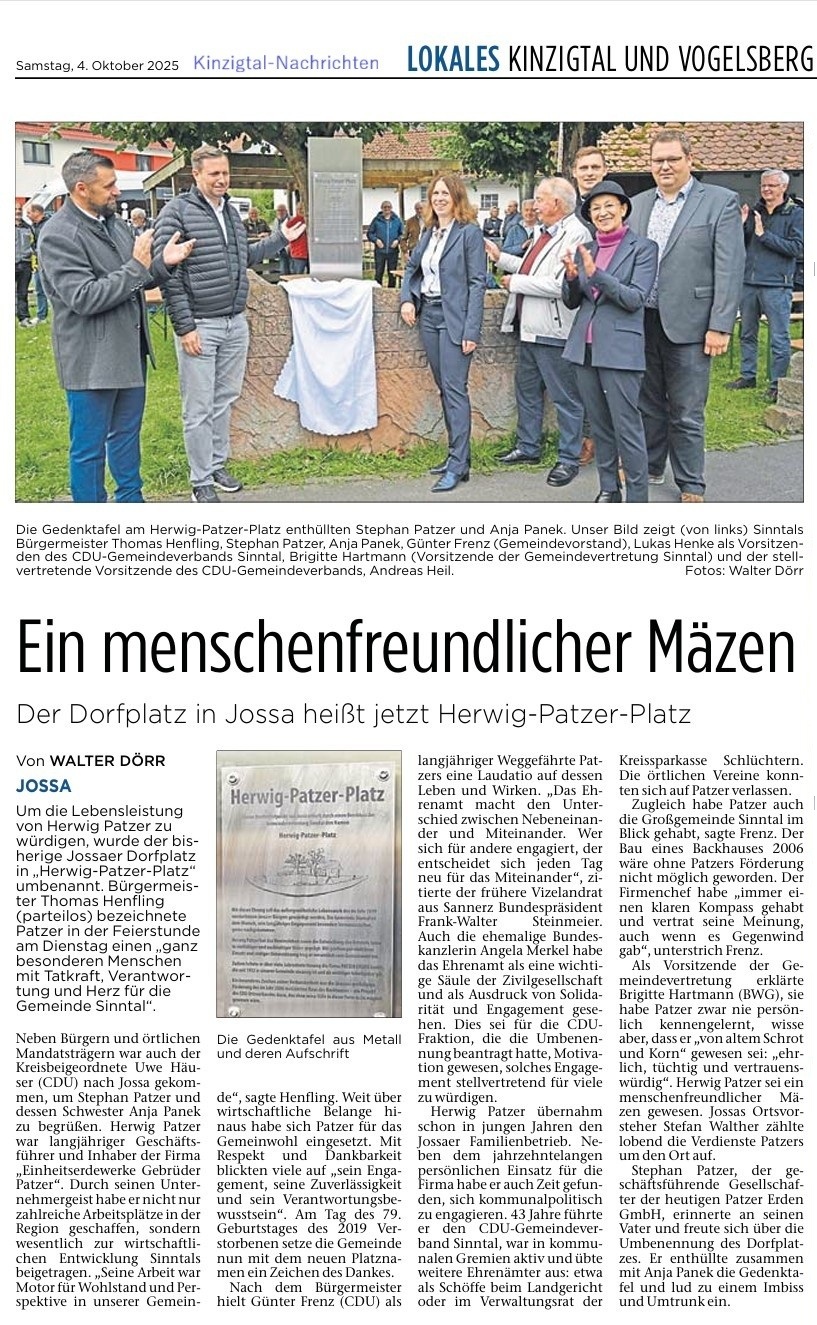 Am 30. Sept. 2025 wurde die Namenstafel für den Herwig-Patzer-Platz montiert.