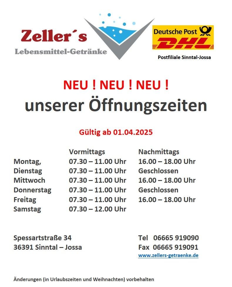 Wegen Krankheit aktuell geänderte Öffnungszeiten